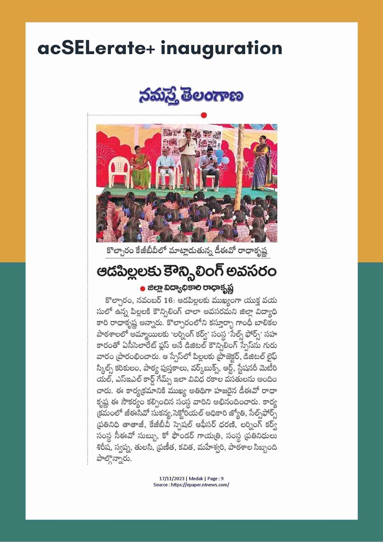 ✅ acSELerate: Mainstreaming Systemic Social-Emotional Learning in India, Childhood Education, 99:3, 24-31 (2023). DOI: 10.1080/00094056.2023.2212555